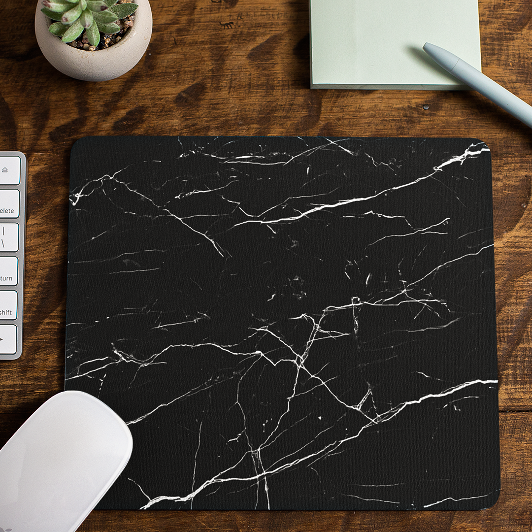 Add some flair to your workspace with the sleek and stylish Black Marble Mouse Pad. Its unique design adds a touch of sophistication to your desk while providing a smooth surface for your mouse to glide on. Elevate your productivity and make a statement with this must-have desk accessory.