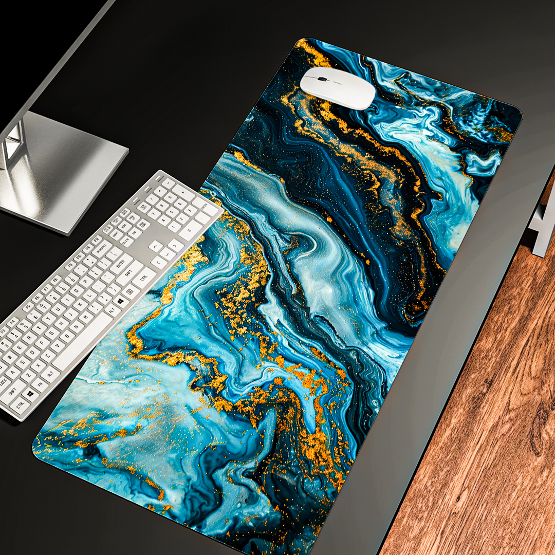 Enhance your workspace with our Blue Gold Marble Desk Mat. The elegant design adds a touch of sophistication to any desk. Its smooth surface protects your desk from scratches and provides a comfortable writing experience. Made with high-quality materials, it is durable and easy to clean.