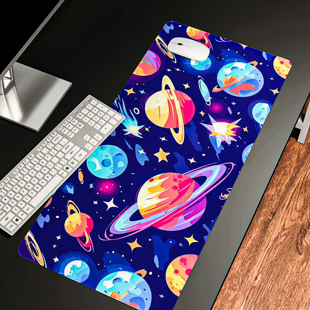 Elevate your work space with the stunning Space Abstract Desk Mat. Designed with a space-inspired abstract pattern, this desk mat brings a touch of creativity and inspiration to your desk. The smooth surface provides effortless mouse movement and protects your desk from scratches. Boost productivity while adding a touch of style to your office.